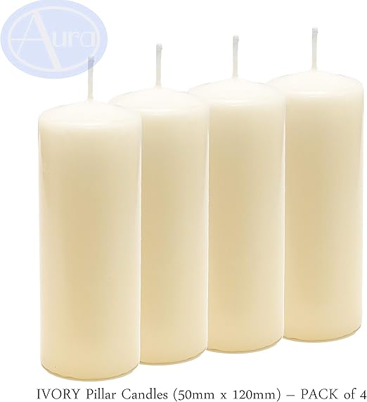Aura Ivory Pillar Candles Pack Of 4 50mm X 120mm Amazon Co Uk