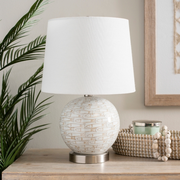Ivory And Brown Fish Round Table Lamp Kirklands