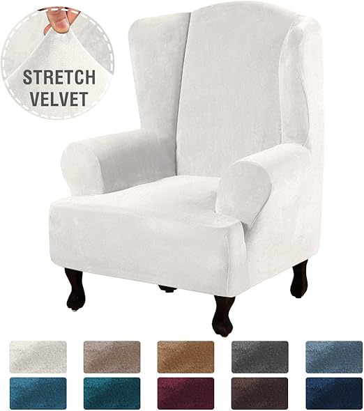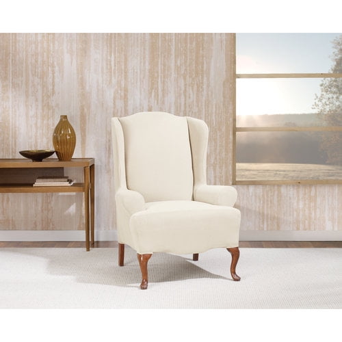 Stretch Morgan 1 Piece Wing Chair Furniture Cover Ivory Walmart
