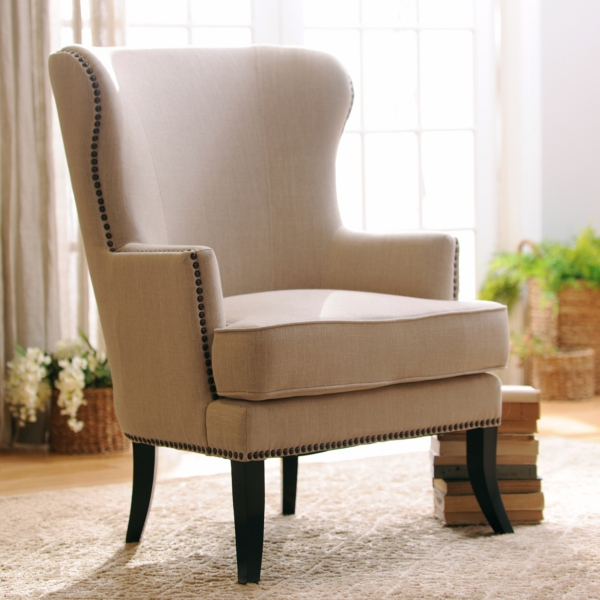 Shop Seville Upholstered Ivory Wing Chair With Nailhead Trim 29 1