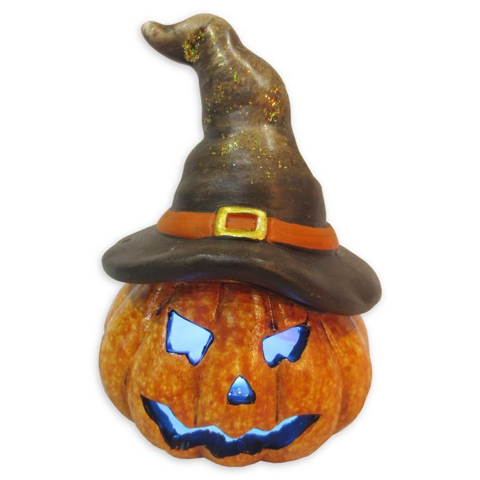 Glass Jack O Lantern In Witches Hat Accent Lamp Collections Etc