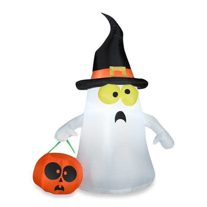 Gemmy Ghost With Witch Hat Inflatable Outdoor Decoration Bed
