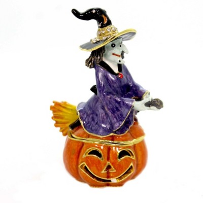 Hinged Trinket Box 3 5 Witch On Jack O Lantern Pumpkin Halloween