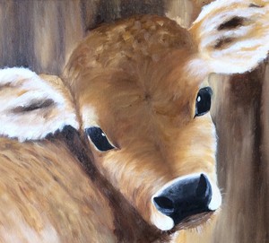 Jersey Cow Oil Painting Cow Art On 12x12 Gallerymusings