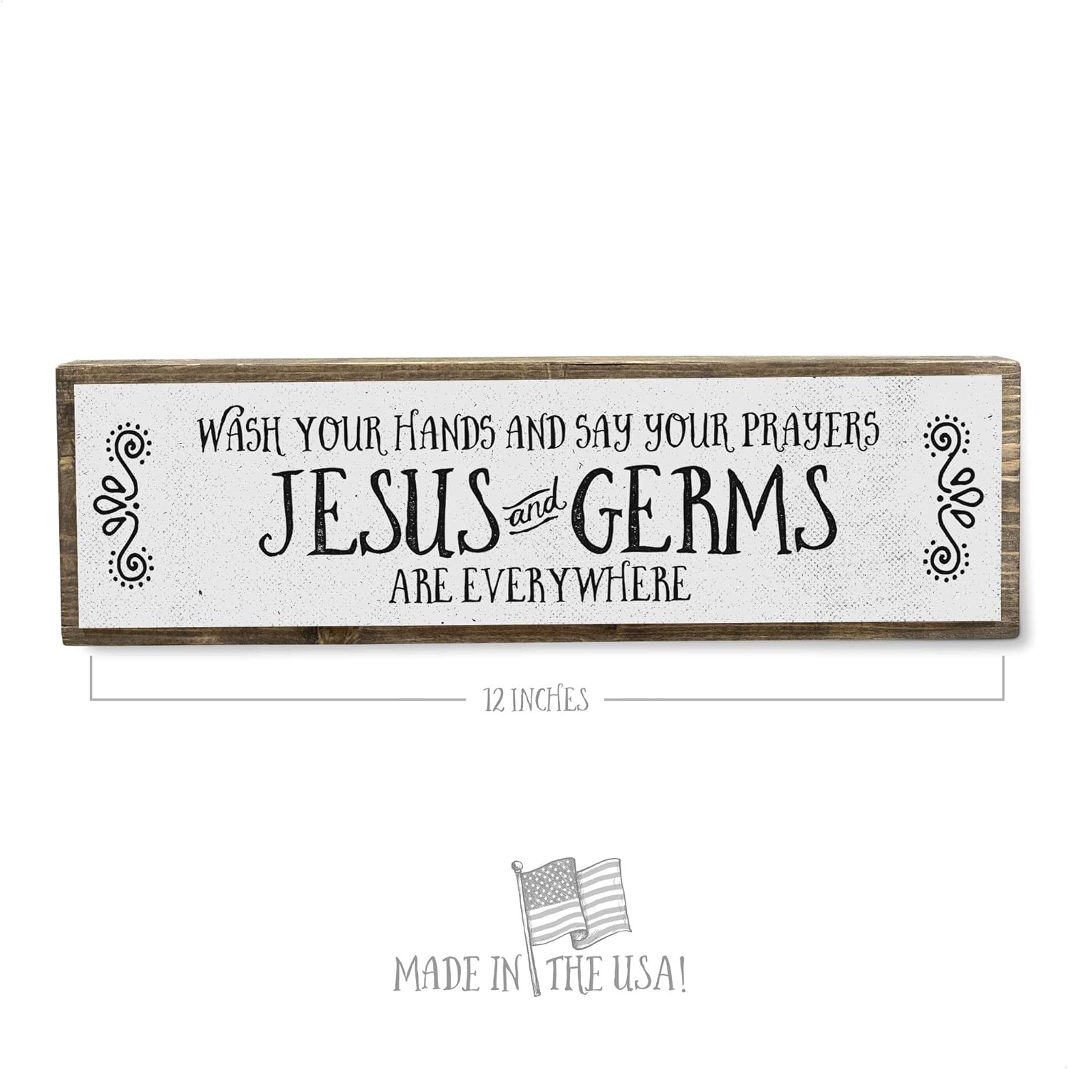 Wash Hands Say Prayers Jesus Germs Everywhere Sign Bathroom Decor