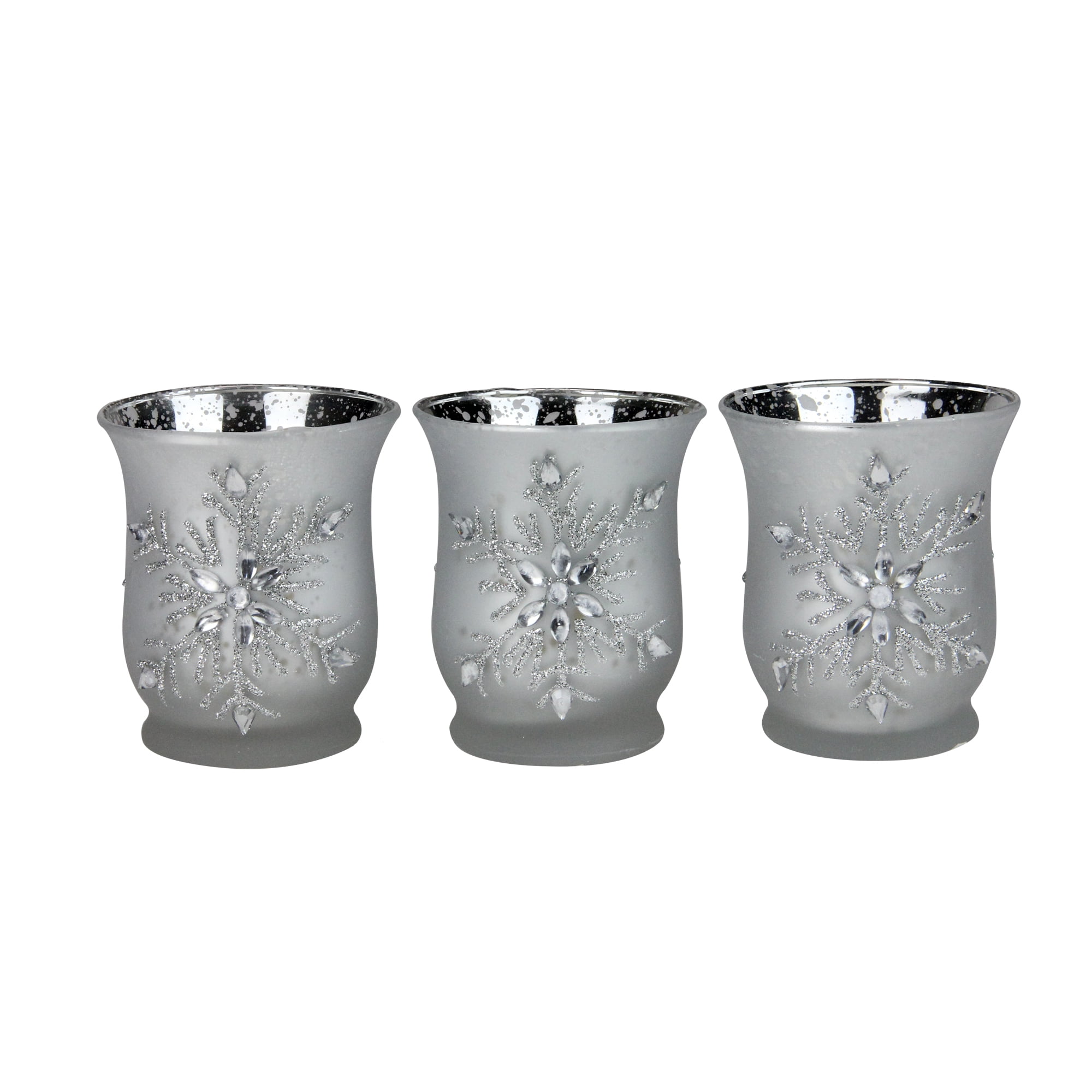 18 Matte Silver Glass Jeweled Snowflake Christmas Votive Candle