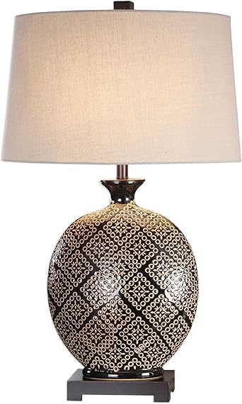 Uttermost Kelda Gloss Black Tribal Ceramic Jug Table Lamp