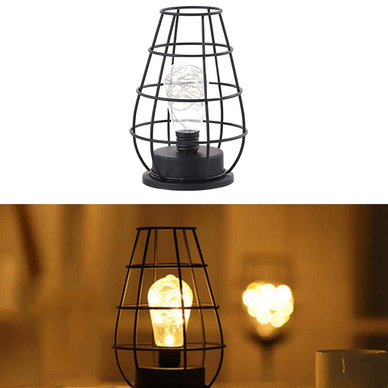 Creative Retro Iron Wine Jug Art Hollow Table Lamps Led Night