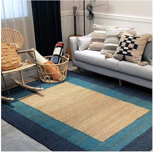 Hickory Jute Rug With Sky Blue Border Jute Rug Rugs Fabric Rug