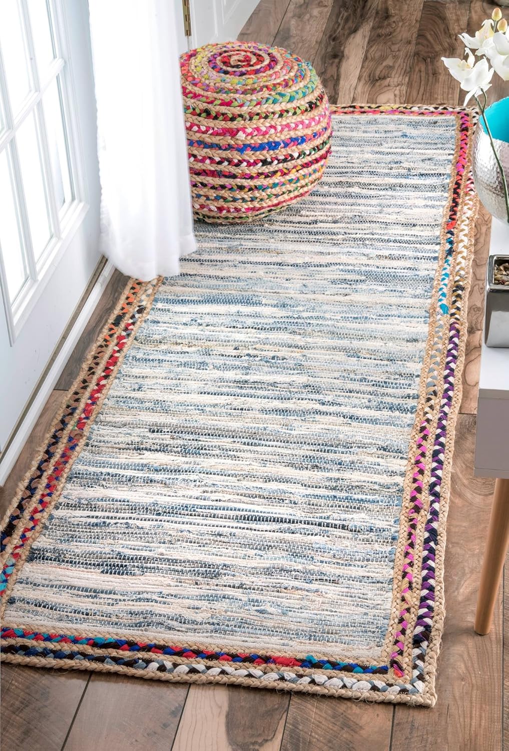 Nuloom Jute Simple Border Area Rug Blue 5 X 8 Feet Amazon Co
