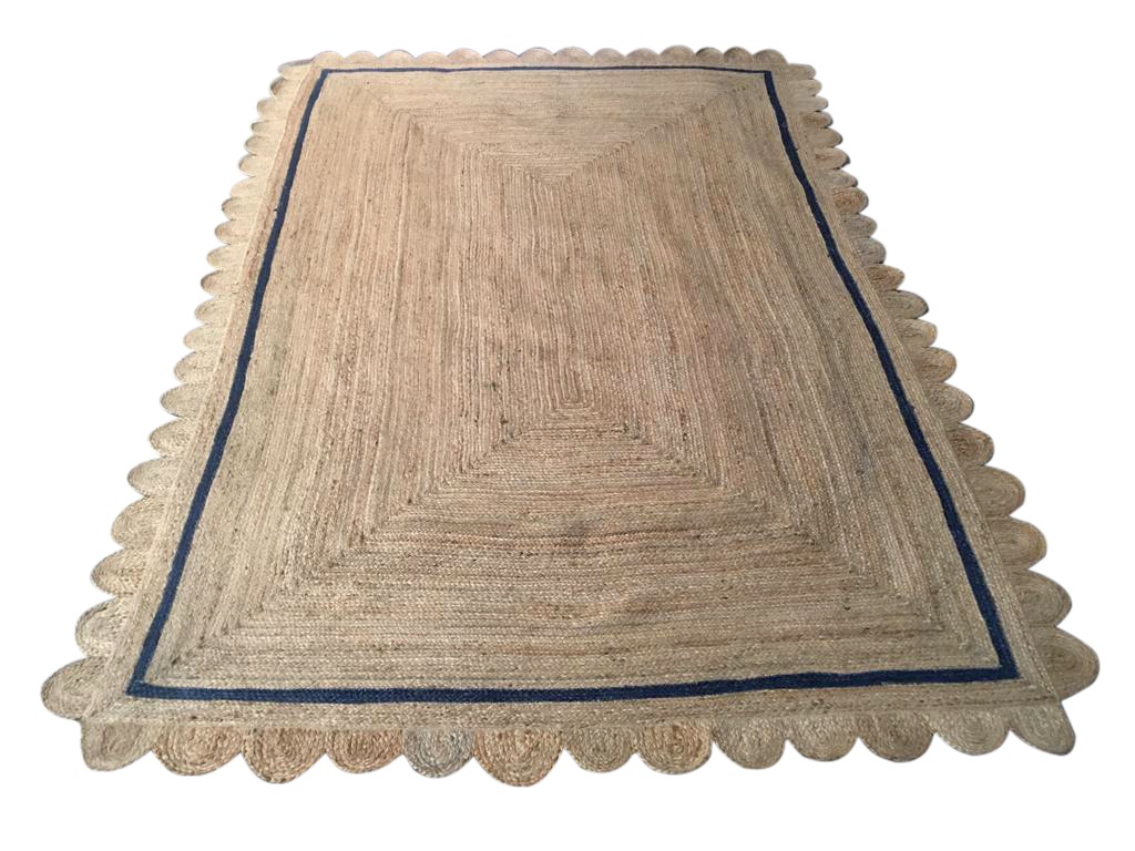 Scalloped Rectangular Jute Rug With Navy Border Tate