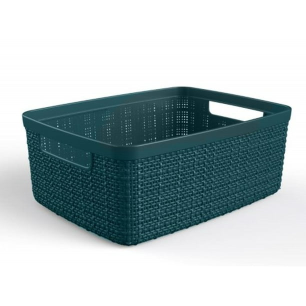 Curver Jute Basket Small 2pk Resin Plastic Storage Bin Aqua