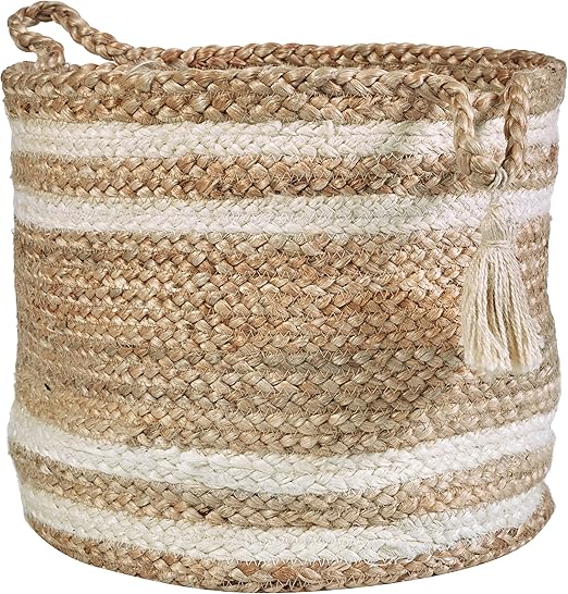 Decorative Laundry Bin Braided Jute Storage Basket Size Dimension