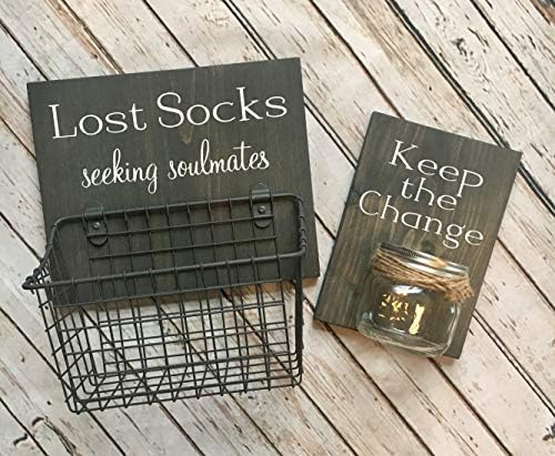 Derles Wood Laundry Room Sign Combo Keep The Change And Lost Socks Seeking Soulmates Or Solemates Wood Sign With Attached Glass Jar Coin Holder Amazon Co Uk Kitchen Home