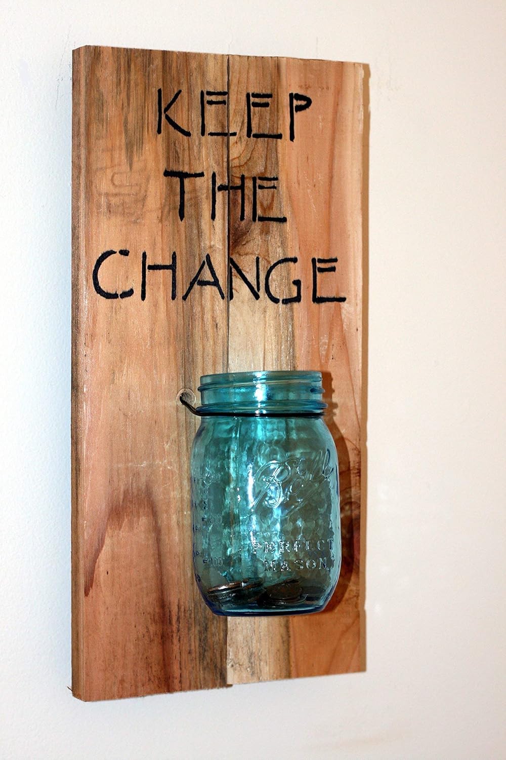 Mason Jar Change Holder Keep The Change Laundry Room Sign Walnut Stain Home Decor Plaques Signs Home Garden Shreee In