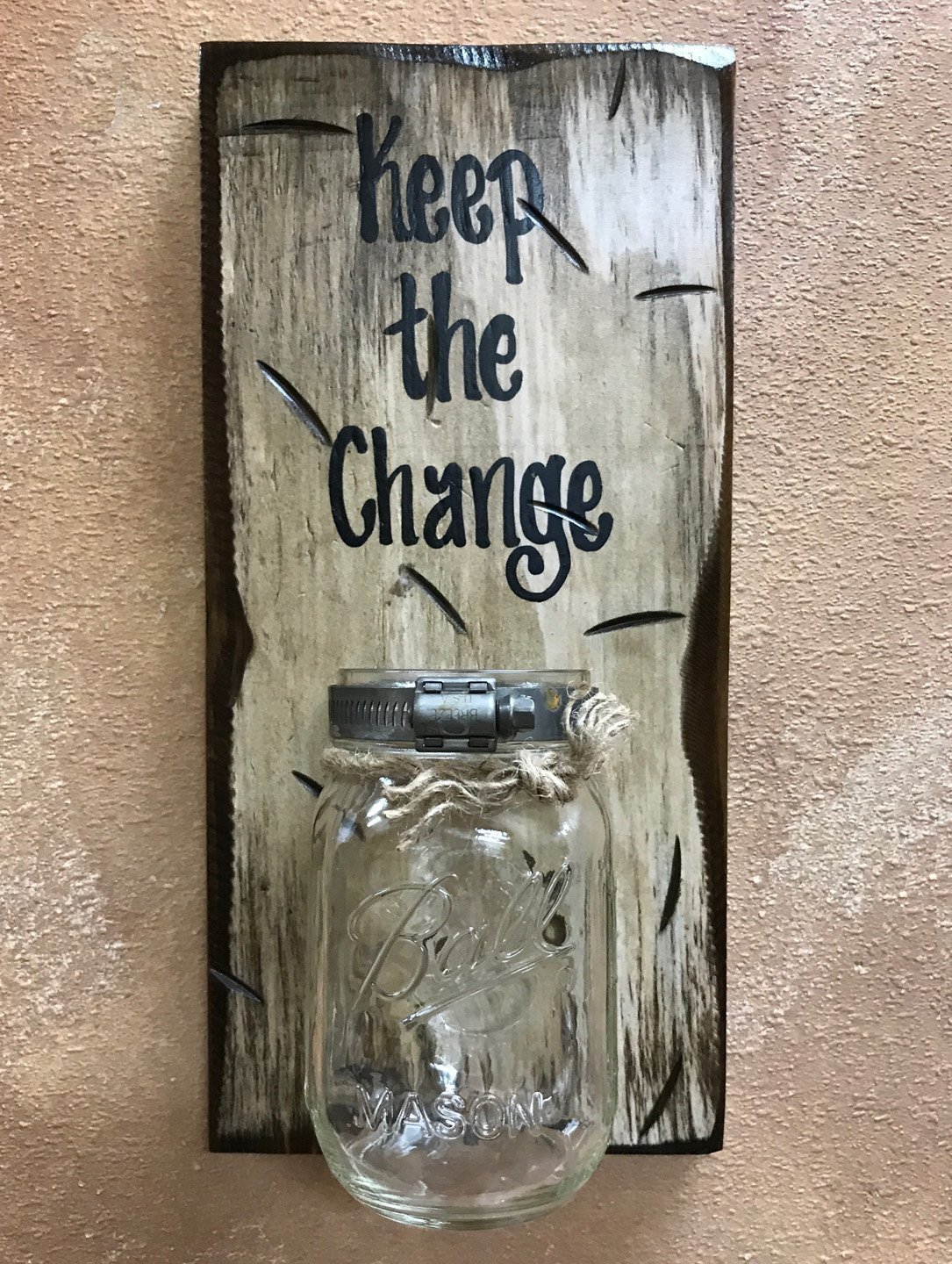 Mason Jar Keep The Change Wall Hanging Great For Etsy