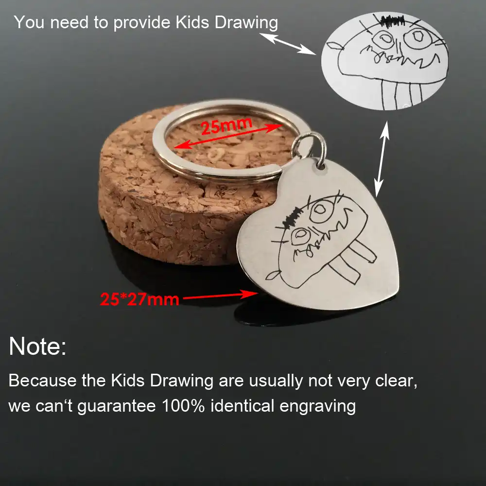 Personalized Kids Drawing Keychain Engraved Baby Artwork Charm Key