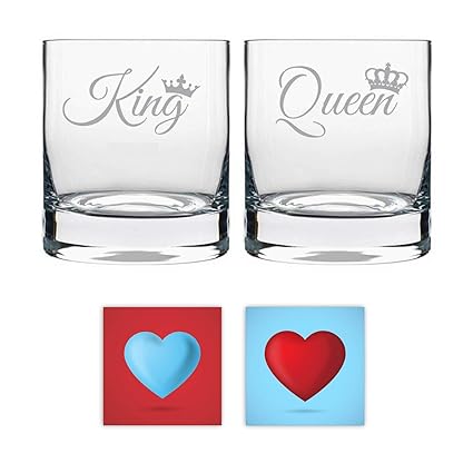 Engraved King Queen Whiskey Glasses Valentine Gifts For