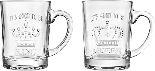 Juvale King Queen Crown Design Beer Wine Drinking Glasses For
