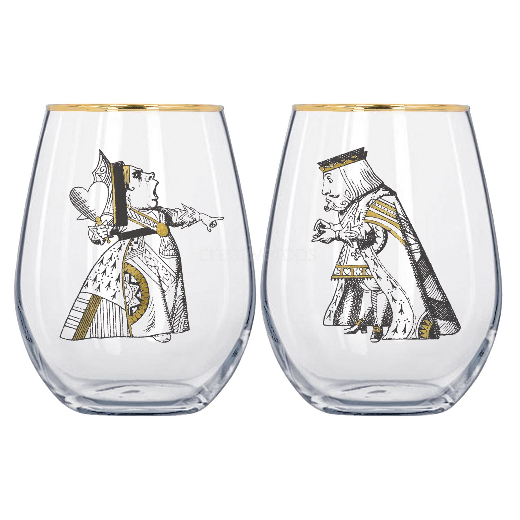 Alice In Wonderland King Queen Glasses Set Couples Drinking