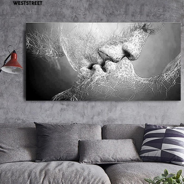 New Abstract Black White Love Kiss Canvas Art Printed Oil Paintings Po Home Decor