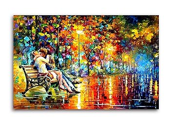 Tamatina Canvas Painting A Kiss In The Park Leonid Afremov Palette Knife Canvas Art Modern Art