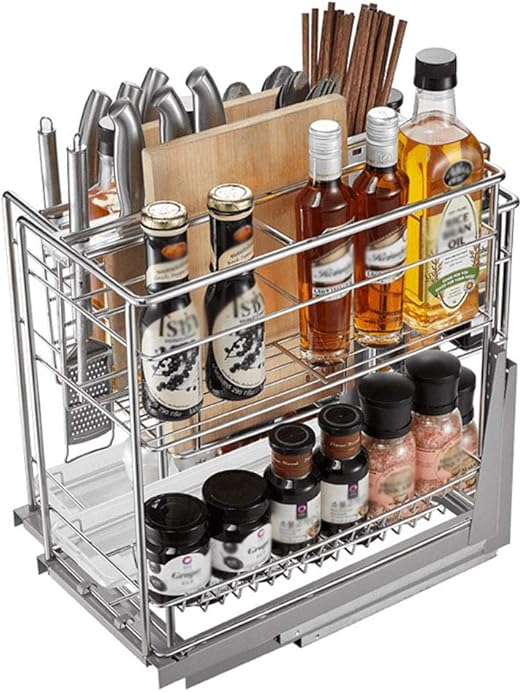 Kitchen Cabinet Pull Out Basket Stainless Steel Storage Spice Jar