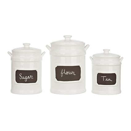 Amazon Com Home Essentials S 3 Ivory Chalkboard Canisters Home