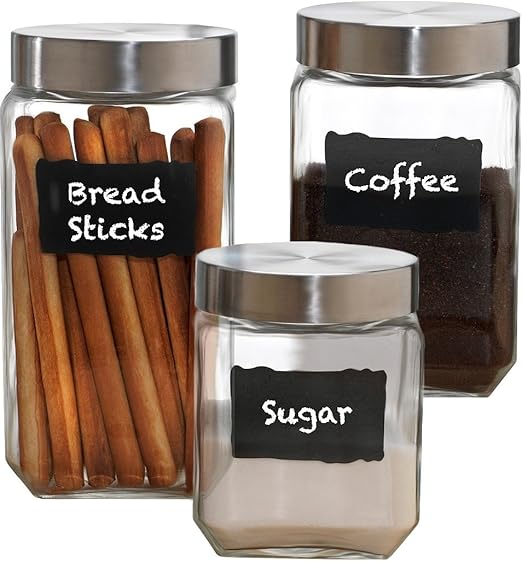 Amazon Com Set 3 Large Glass Chalkboard Label Kitchen Canisters