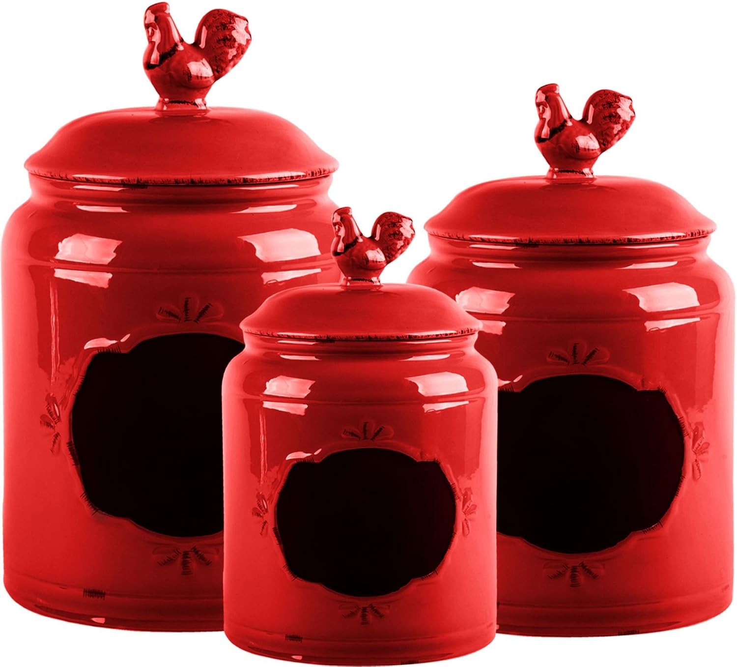 Amazon Com Home Essentials Set Of 3 Red Chalkboard Rooster