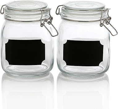Set Of 3 Glass Storage Jars Clip Top Lid With Chalkboard Home