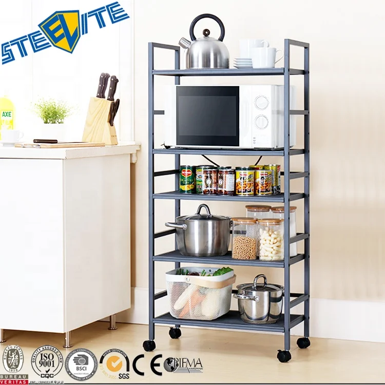 Rustic Kitchen Trolley Cart Rolling Storage Cart With 5 Tier