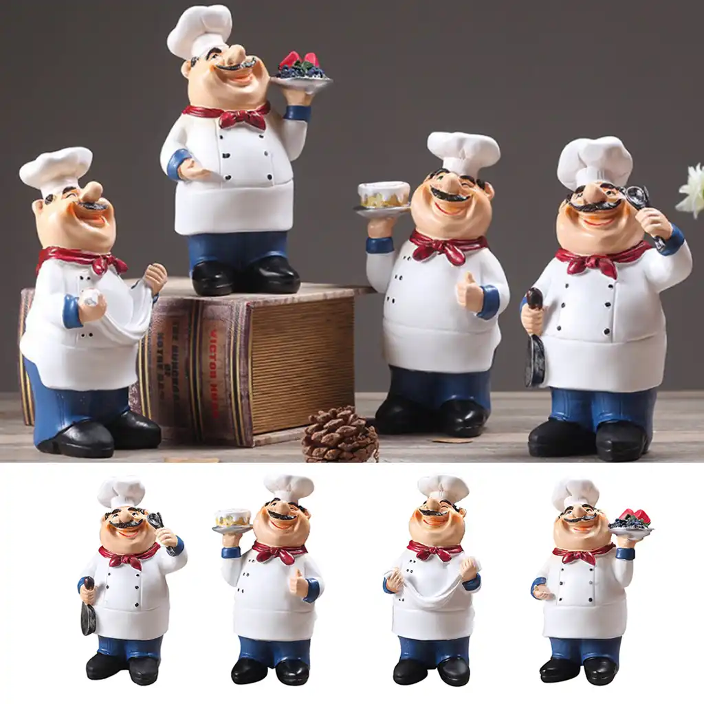4pcs Resin Kitchen Chef Statue Figurine Decor Home Table