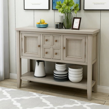Check Out These Bargains On Buffet Cabinet Sideboard Console Table For Entryway Kitchen Storage Cabinet With 4 Drawers Bottom Shelf Home Furniture Console Table Upgrade Solid Wood Frame Legs 64 X15 X 30 Gray