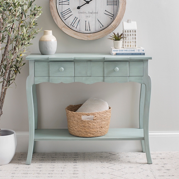 Shop Retro Console Table For Entryway With Drawers Blue On Sale Overstock 28739213