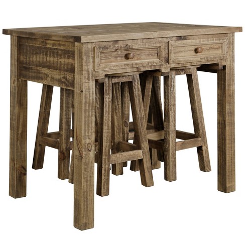 Rustic Pine Collection Mezcal Kitchen Islandw Four Bar Stools