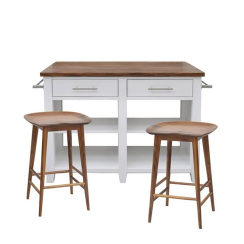 Northbeam 3 Piece Dual Toned Wood Kitchen Island Set With 2 Stools