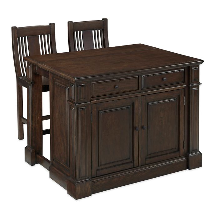 Home Styles Woodbridge Two Tier Kitchen Island And Stools Set In