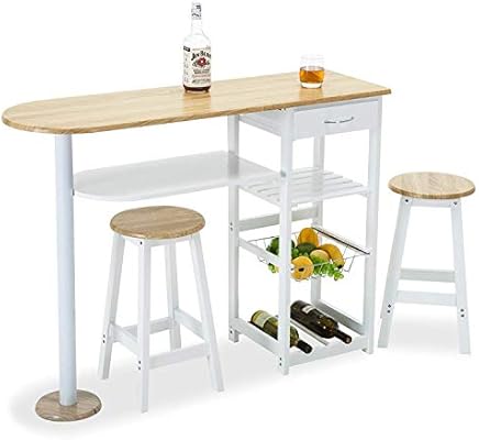 Homcom 3 Tier Pine Optional Stool Storage Kitchen Island With