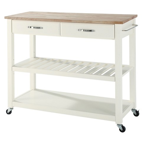 Natural Wood Top Kitchen Cart Island With Optional Stool Storage