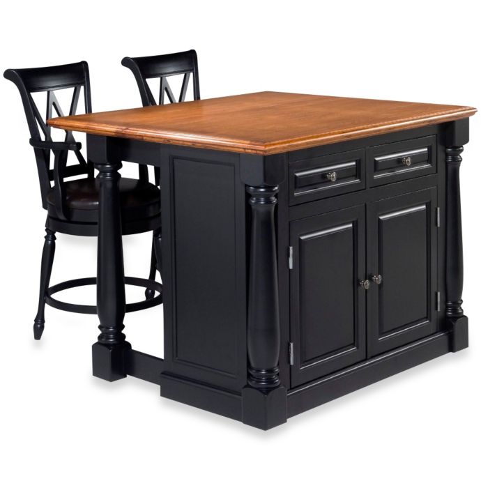 Home Styles Monarch Black Kitchen Island With Two 24 Stools