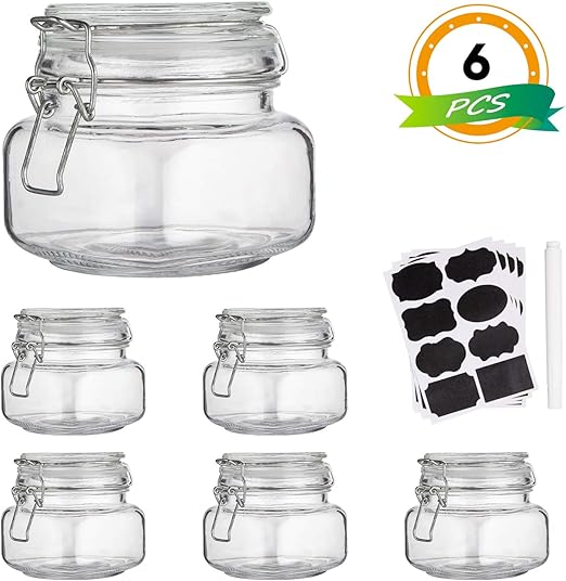 6pcs 32 Oz Kitchen Food Storage Glass Mason Jars Canister Set With