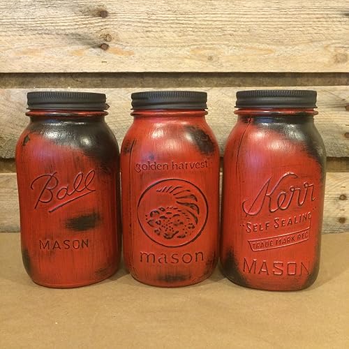 Amazon Com Rustic Red Mason Jar Canister Set Rustic Mason Jar