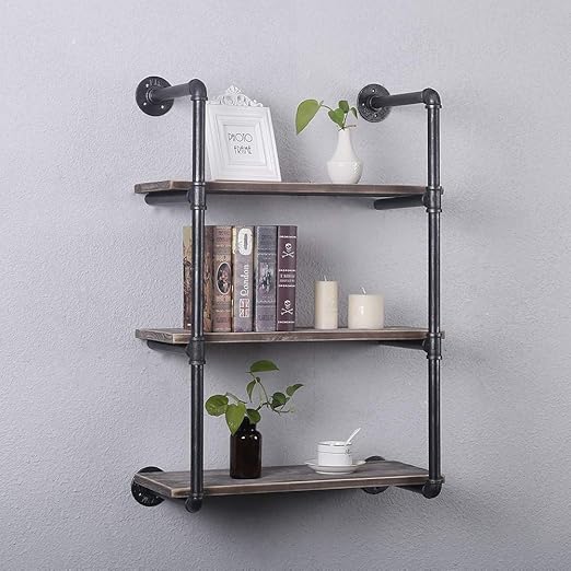 Amazon Com Industrial Pipe Shelving Metal Floating Shelves Rustic Kitchen Wall Shelf Wood Hanging Shelf 24in Steampunk Large Pipe Shelves Wall Mounted Bar Bookshelves Farmhouse Shelving Bookshelf 3 Tier Home Kitchen