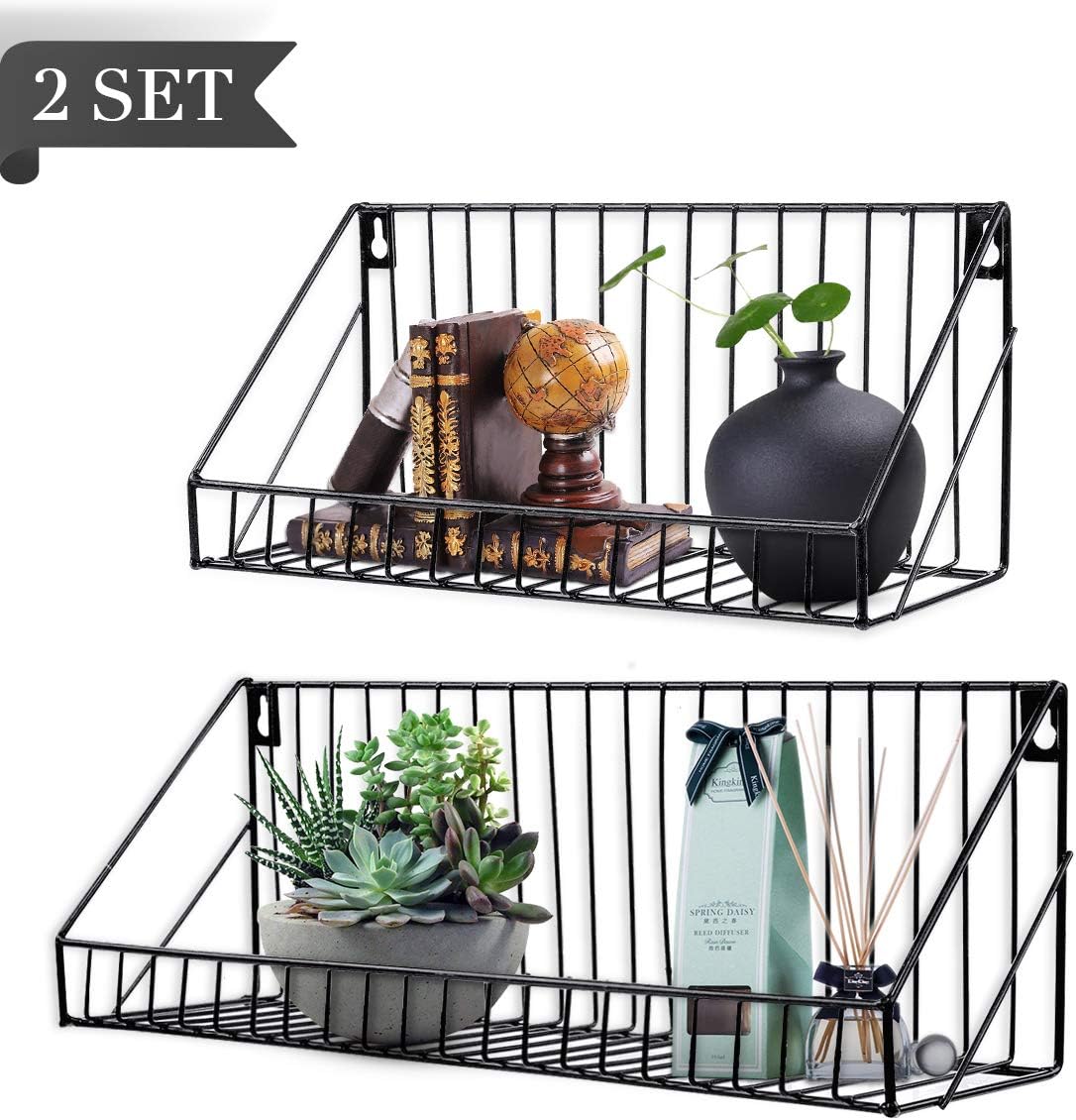 Amazon Com Agsivo Floating Shelves Wall Mounted Metal Hanging Shelves Set Of 2 Metal Wall Shelf Storage Basket With Seamless Nails For Bedroom Living Room Bathroom Kitchen Office 2pack Kitchen Dining
