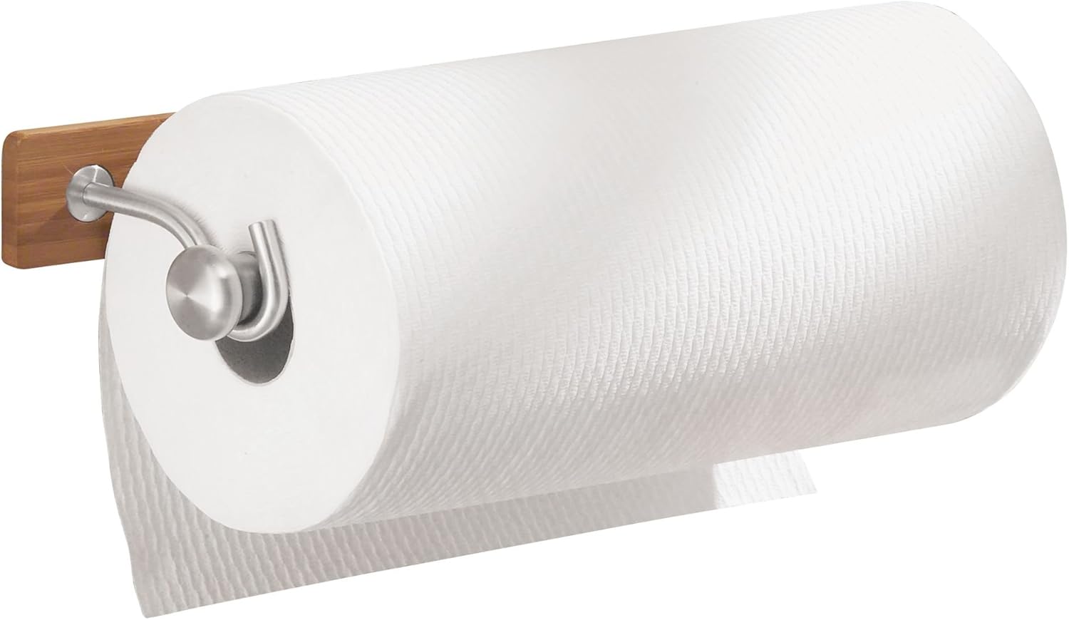 Idesign Kitchen Roll Holder Wall Mounted Bamboo And Stainless