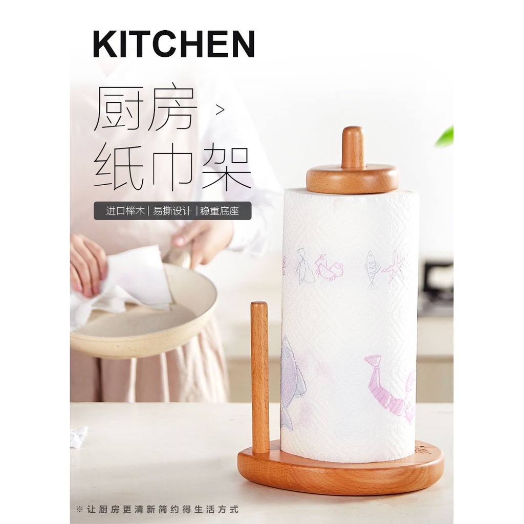 Roll Paper Storage Rack Beech Wood Paper Towel Rack Kitchen