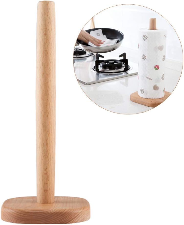 Paper Towel Holder Beech Wooden Vertical Roll Paper Stand Holder