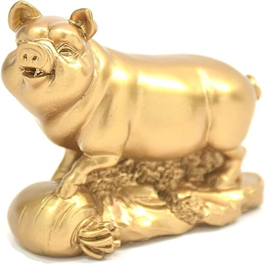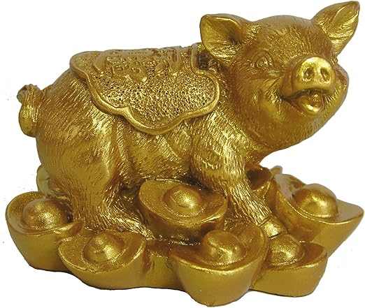 Amazon Com Feng Shui Import Golden Pig Statue Stepping On Ingots