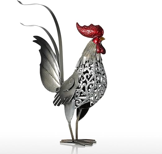 Amazon Com Tooart Rooster Statue Iron Rooster Metal Sculpture